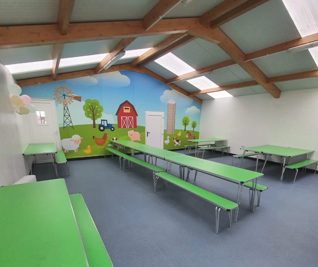 After your 2 hour timeslot: You and your guests are welcome to stay on at the farm after your time in the party room until the farm closes at 5pm. We just ask that you vacate the room to allow our team to clean before the next party arrives. Parties booked for the 3pm – 5pm party slot are very welcome to arrive earlier ( by prior arrangement) to enjoy the farm before their farmyard tour and time in the party room begins.